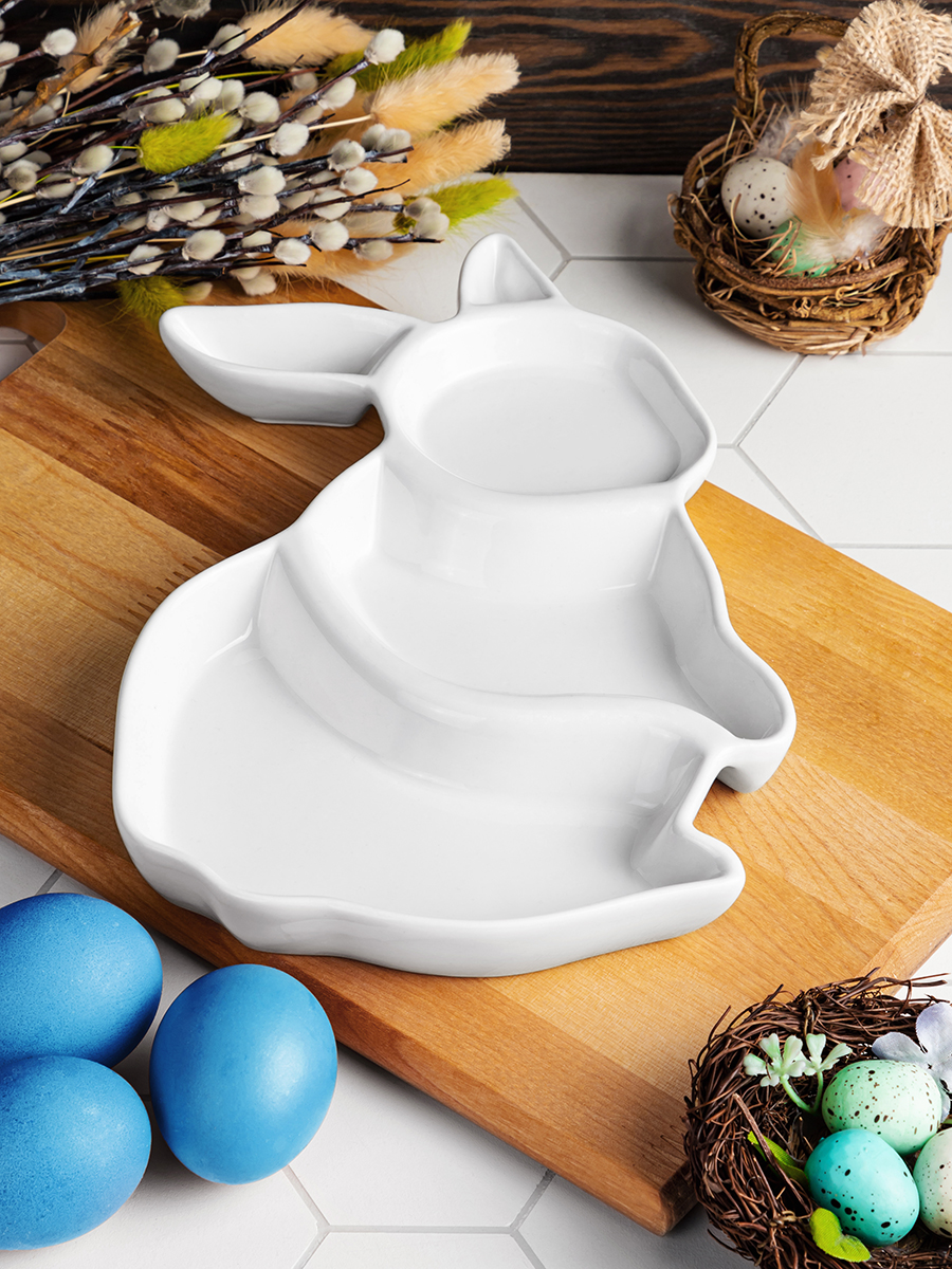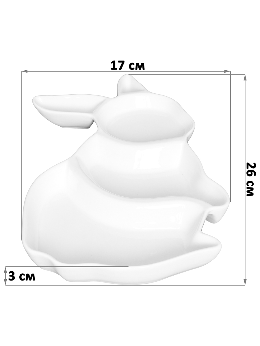 Менажница 26*17*3 см "Заяц" цельная 3 секции + 2 секции - ушки