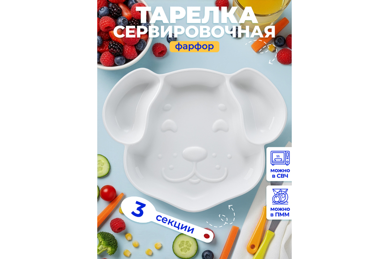 Менажница 400 мл 23*18,5*3 см "Собачка" цельная 3 секции, фарфор