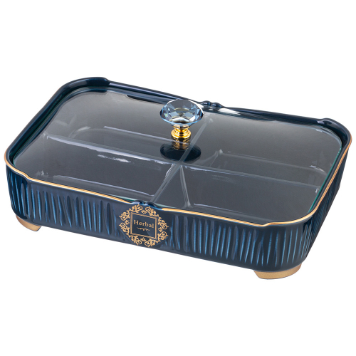 МЕНАЖНИЦА LEFARD "HERBAL" 4 СЕКЦИИ 31*22*11 СМ СО СТЕКЛЯННОЙ КРЫШКОЙ СИНЯЯ (КОР=6ШТ.)