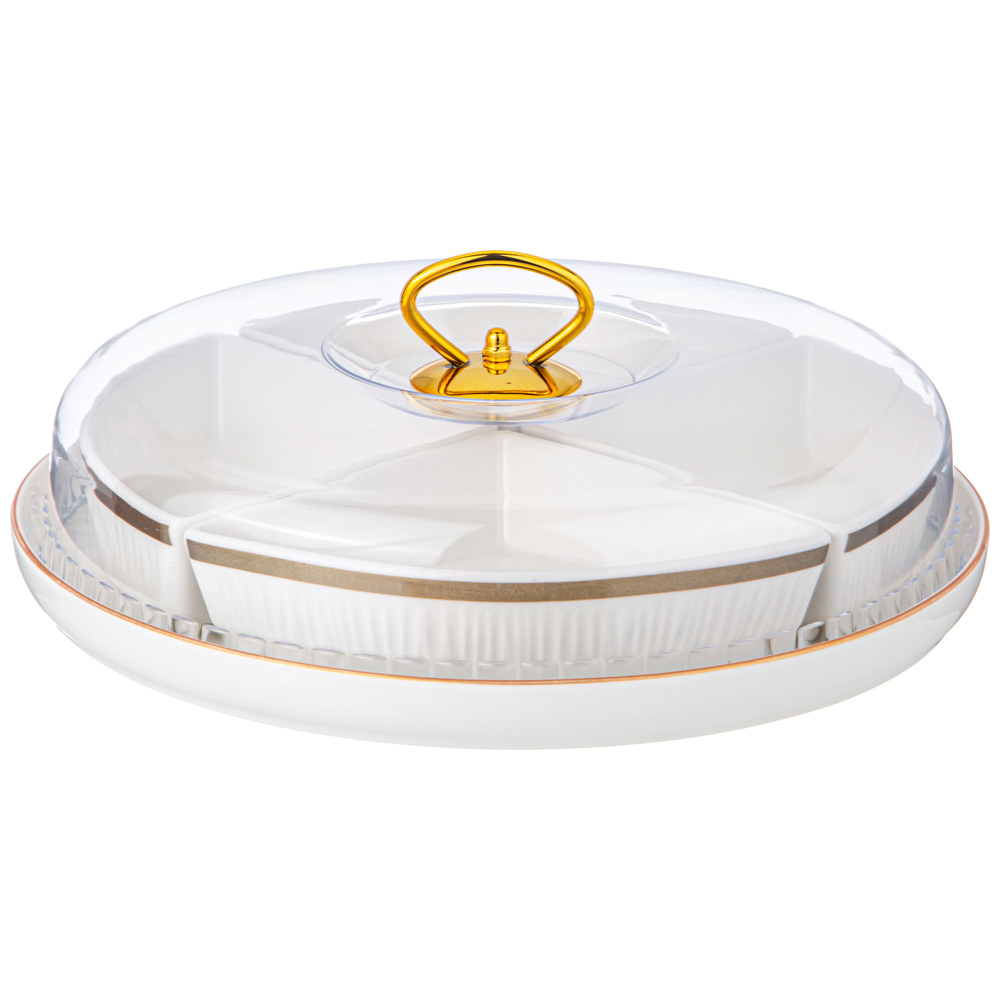 Коллекция "Herbal" ТМ LEFARD – это настоящая находка для хозяйки. Удивить гостей и домашних совсем непросто и поэтому дизайнеры торговой марки обращают внимание на способы подачи блюд и организацию чаепитий. Мармиты прямоугольные и овальные, менажницы круглые и прямоугольные на 4 и 5 секций с пластиковыми крышками и без, креманки, салатники разных размеров, банки, чайники с металлическими ситами, чайные пары и кружки помогут в этом. Изделия выполнены из упрочненного фарфора с отделкой близкой по цвету золотой. Красивый рельеф напоминает стебли сочных трав и создает игру света благодаря блестящей глянцевой поверхности. Это хороший подарок. Стильная цветная упаковка. Посуда прошла сертификацию. Безопасна для контакта с пищевыми продуктами. Изделия не рекомендуется использовать в микроволновой печи, мыть в посудомоечной машине.