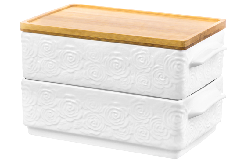 Набор 2 блюд д/холодца 1,6 л 20,5*12*12см "Розы" с бамбуковая крышка
