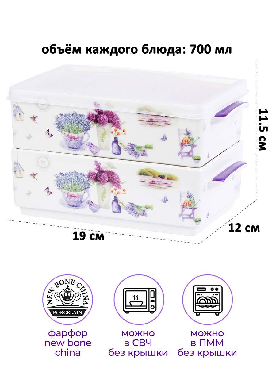 Набор 2 блюд д/холодца 700 мл 19*12*11,5 см "Лаванда" NEW BONE CHINA