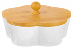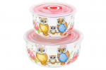 Набор 2 блюд для холодца из серии «Совушки» от Elan Gallery предназначен для приготовления и эстетичной подачи ваших любимых угощений. Общий размер комплекта – 19х12х11,5 см, объём каждого изделия – 700 мл. Выполнены из фарфора нового поколения new bone china, сочетающего в себе изящность и высокую прочность. За счёт гладкости изделия легко отмываются, поэтому сохраняют привлекательный внешний вид и практичны в использовании. Плотная структура материала позволяет посуде дольше сохранять температуру блюд и напитков. От других видов костяного фарфора new bone china отличается большей экологичностью в производстве. Поверхность изделия украшает забавный рисунок: две совы и маленький совёнок с большими глазами сидят на ветке дерева. Нежные бутоны розовых и голубых цветов, а также растительный узор на фоне придают композиции сказочности и тепла. Крышка выполнена из пластика. Вместительные контейнеры подойдут для сельди под шубой, салатов и плова. Используйте их в качестве салатников или глубоких сервировочных блюд для эстетичной подачи закусок из мяса и рыбы. Такая посуда удобна для приготовления заливного или желе, а также бисквита или творожной запеканки. Заполните каждое блюдо щедрой порцией мороженого, чтобы угостить большую компанию. Компактно храните штабелируемые блюда друг на друге. Лаконичный дизайн впишет их в интерьер любой кухни, гостиной или столовой. Не рекомендуется применять абразивные моющие средства. Без крышки подойдут для использования в посудомоечной машине, микроволновой печи и духовом шкафу при температуре до 230 градусов. Поставляются в дизайнерской картонной коробке – благодаря ей вам не потребуется дополнительная подарочная упаковка. Фарфоровая сервировочная посуда будет оригинальным подарком для хозяйки, ценящей не только практичность, но и привлекательность. Серия «Совушки» от бренда Элан Галерея станет украшением любого кухонного инвентаря и позволит собрать красивый сервиз в едином стиле! /