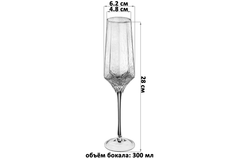 Набор 2 бокалов для шампанского 300 мл 6,2*6,2*28 см "ICE", прозрачный