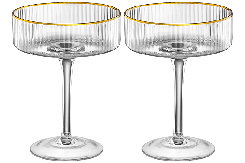 Набор 2 бокалов для шампанского - креманка 260 мл 10,2*10,2*14 см прозрачный с золотой каймой