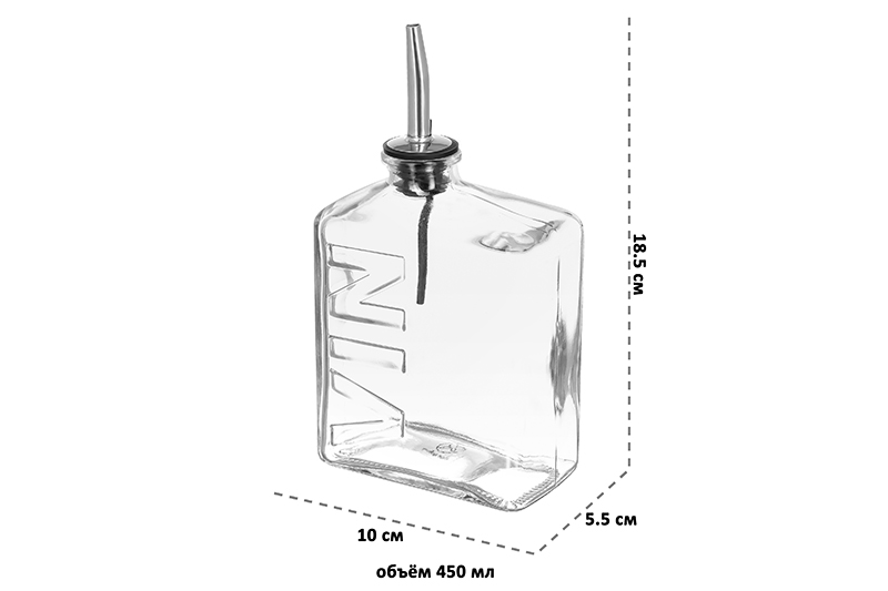 Набор ёмкостей из стекла для хранения масла и уксуса состоит из двух предметов и станет украшением вашего стола. Размер каждой бутылочки – 10х5,5х18,5 см, объём – 450 мл. Размер каждой прямоугольной ёмкости без съёмного дозатора – 10х5,5х13,5 см. "Glaskraft" — это коллекция посуды для создания порядка и уюта на вашей кухне. Серия вдохновлена шведскими традициями и выполнена из прозрачного стекла с использованием элементов из металла или бамбука. Стильный дизайн позволяет хранить бутылочки не только в шкафу, но и на столе или открытой полке. Металлические дозаторы (краны) на бутылочках плотно прилегают к отверстиям благодаря эластичным силиконовым элементам. Стеклянные баночки с краниками украшены надписями "OIL" (масло) и "WIN" (уксус). Дозаторы позволят наливать необходимое количество жидкости в тарелку с едой. Диспенсеры подходят для оригинальной сервировки стола в будни или на праздник. Можно использовать для хранения подсолнечного, оливкового и любых видов растительных масел в столовой или на кухне. Удобный носик каждой ёмкости защитит от проливания мимо тарелки. Сервировочную бутыль можно приспособить под соевый соус, сироп или другие жидкости. Она станет предметом декора любого кухонного стола. Приспособления для хранения жидкостей позволят держать в процессе приготовления пищи всё необходимое под рукой. Не использовать абразивные моющие средства. Без крышек можно мыть в ПММ (посудомоечной машине). Инвентарь поставляется в стильной картонной коробке (упаковке). Кухонные принадлежности станут полезным подарком для любой хозяйки."Glaskraft" – это функциональность и минимализм. Добавьте шведского уюта и очарования в каждый уголок вашего дома!