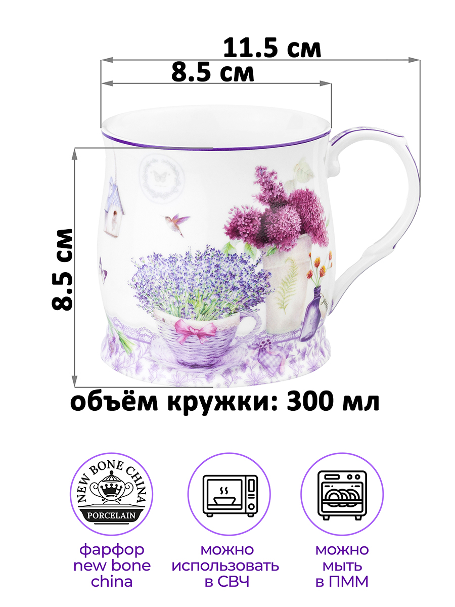 Набор 2 кружек 300 мл 11,5*8,5*8,5 см "Лаванда" NEW BONE CHINA, фарфор