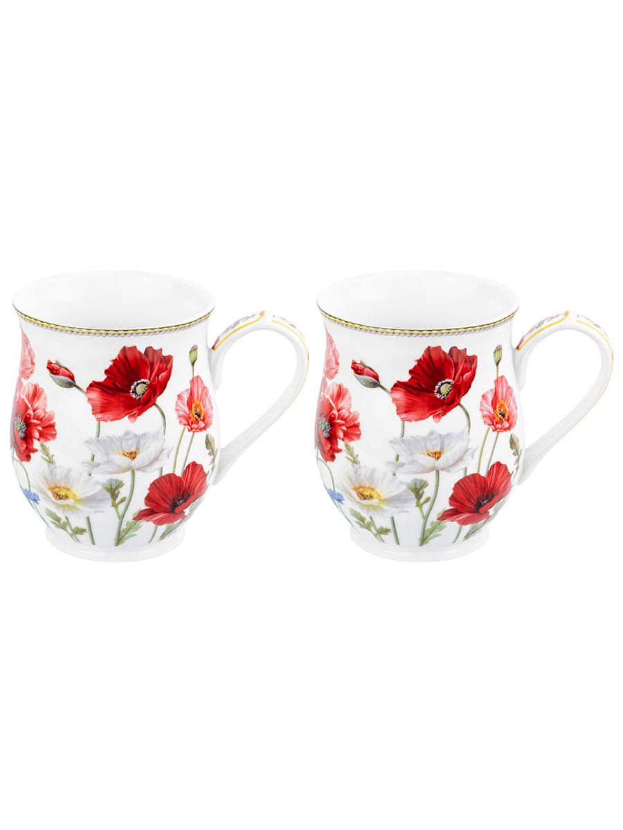 Набор 2 кружек 350 мл 11,5*8,2*10 см "Маки" бочонок, NEW BONE CHINA, фарфор