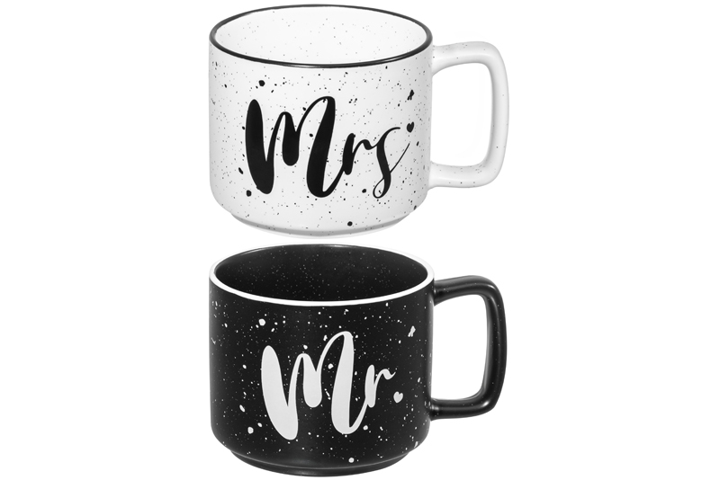 Набор 2 кружек 350 мл 12,5*9*7,5 см "Mr&Mrs", белый и черный, фарфор