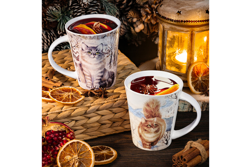 Набор 2 кружек «Коты» от Elan Gallery предназначен для эстетичной сервировки вашего стола. Размер каждой ёмкости – 12,5х9,5х9 см, объём – 350 мл. Выполнен из фарфора нового поколения new bone china, сочетающего в себе изящность и высокую прочность. Такие изделия легко отмываются, поэтому сохраняют привлекательный вид и практичны в использовании. Плотная структура материала позволяет посуде дольше сохранять температуру блюд и напитков. От других видов костяного фарфора new bone china отличается большей экологичностью в производстве. Поверхность изделий украшает яркий рисунок в виде реалистичных кошек на фоне снежного леса. Мы создали коллекцию новогодних и рождественских товаров для сервировки и декора, которые наполнят пространство атмосферой уюта. Изделия помогут оформить интерьер праздничными композициями и добавят нотку зимнего волшебства. Кофейные кружки помогут вам провести множество приятных завтраков с капучино и латте, а также уютные чайные вечера с конфетами, вафлями и другими сладостями. Подойдут ценителям чая и кофе, которые любят пить из красивой и необычной посуды. Согрейтесь зимой любимым напитком: какао с маршмэллоу, ягодным чаем, горячим шоколадом или глинтвейном. Летом освежитесь домашним лимонадом или морсом. Это эффектный подарок на любой праздник, в том числе на Новый год и Рождество. Не рекомендуется применять абразивные моющие средства. Подходят для использования в посудомоечной машине и микроволновой печи. Поставляются в дизайнерской картонной коробке – благодаря ей вам не потребуется дополнительная подарочная упаковка. В коллекции бренда Elan Gallery представлены посуда, сувениры и украшения с новогодней символикой. Каждый подберёт оригинальный сюрприз для семьи, друзей и коллег на Новый год и Рождество. Такой подарок наполнит дом семейным теплом и духом праздника!