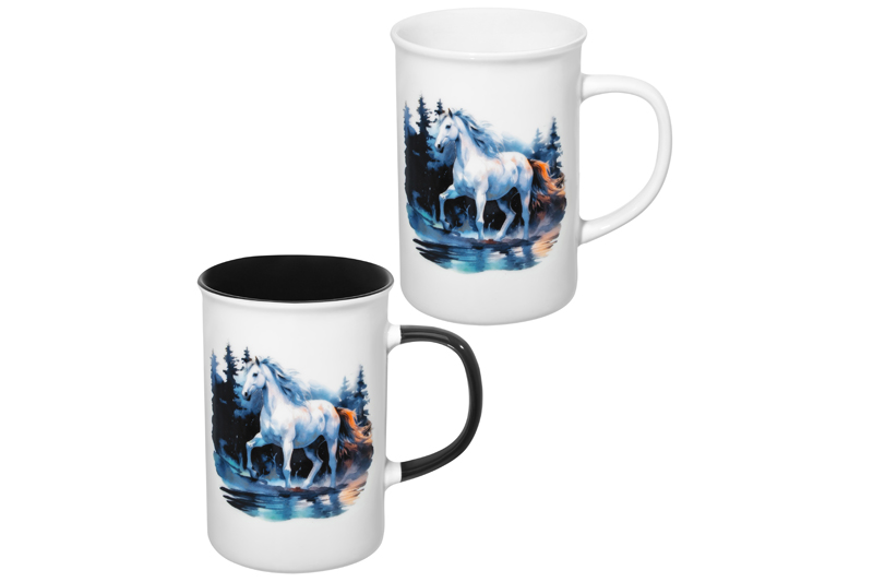Набор 2 кружек от бренда Elan Gallery "Лошадь в осеннем лесу" выполнен из фарфора. Размер каждого изделия 11,5х7,5х11,5 см, объём – 360 мл. Дизайн вдохновлён грацией и красотой самого благородного животного на планете – белой лошади. Красочные образы на изображении приглашают в захватывающее приключение по просторам зелёных полей и дремучих лесов. Кружечки помогут провести множество приятных завтраков с капучино или латте, а также уютных чайных вечеров с любимым горячим напитком. Бокалы с красочными рисунками в данном наборе отличаются по дизайну: один полностью белый, а второй окрашен чёрным внутри и на ручке. Подходят ценителям чая и кофе, которые любят пить из красивой посуды. Фарфоровое изделие с ярким принтом отлично подойдёт как для молока, так свежевыжатого сока и морса. Гладкие фарфоровые стеночки в отличие от керамических быстро отмываются и не впитывают цвет напитков. Кружки со стильным дизайном украсят интерьер кухни или столовой. Подойдут как женщине, так и мужчине для кофейных перерывов на работе в офисе. Можно использовать как парные. Не рекомендуется применять абразивные моющие средства. Подходят для микроволновой печи и посудомоечной машины. Набор поставляется в стильной картонной коробке. Благодаря красочной коробочке вам не понадобится дополнительная подарочная упаковка. Станет приятным подарком на праздник. Подарите фарфоровую кружку близким или коллеге, чтобы выразить свои тёплые чувства. Особенно понравится любителям лошадок, а также ценителям эстетичных и оригинальных вещей. В коллекции бренда Элан Галерея представлено много кухонного инвентаря, сувениров и товаров для дома, в том числе бокалов и красивых чашек. Сделайте перерыв на мечты и насладитесь любимыми напитками из кружек с ярким дизайном!