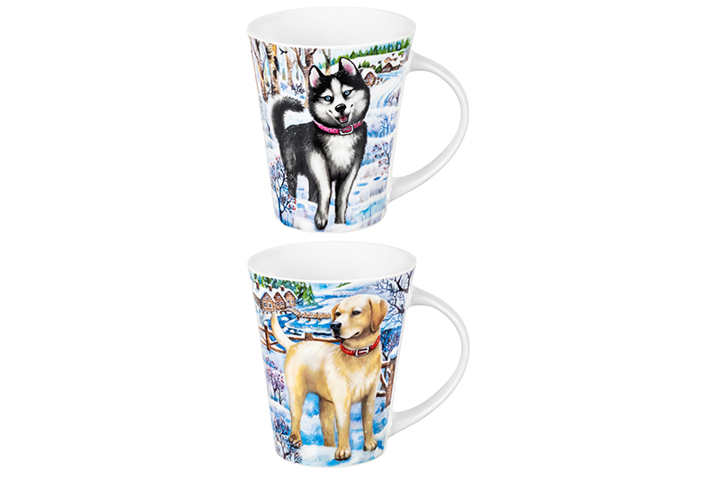 Набор 2 кружек 375 мл 12*9*11 см "Хаски и Лабрадор", фарфор