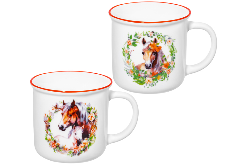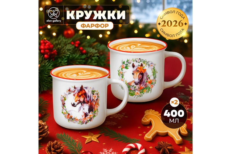Набор 2 кружек от бренда Elan Gallery "Лошадь в цветах" выполнен из фарфора. Размер каждого изделия 12х9,5х8,5 см, объём – 400 мл. Дизайн вдохновлён грацией и красотой самого благородного животного на планете – лошади. Лошадки в окружении благоухающих цветов приглашают помечтать о тёплой загородной атмосфере. Кружечки с красочными рисунками помогут провести множество приятных завтраков с капучино или латте, а также уютных чайных вечеров с любимым горячим напитком. Белые бокалы с изображением красивых лошадок украшены красным окаймлением. Они подходят ценителям чая и кофе, которые любят пить из красивой посуды. Фарфоровое изделие с принтом отлично подойдёт как для молока, так свежевыжатого сока и морса. Гладкие фарфоровые стеночки в отличие от керамических быстро отмываются и не впитывают цвет напитков. Кружки со стильным дизайном украсят интерьер кухни или столовой. Подойдут как женщине, так и мужчине для кофейных перерывов на работе в офисе. Можно использовать как парные. Не рекомендуется применять абразивные моющие средства. Подходят для микроволновой печи и посудомоечной машины. Набор поставляется в стильной картонной коробке. Благодаря красочной коробочке вам не понадобится дополнительная подарочная упаковка. Станет приятным подарком на праздник. Подарите фарфоровую кружку близким или коллеге, чтобы выразить свои тёплые чувства. Особенно понравится любителям лошадок, а также ценителям эстетичных и оригинальных вещей. В коллекции бренда Элан Галерея представлено много кухонного инвентаря, сувениров и товаров для дома, в том числе бокалов и красивых чашек. Сделайте перерыв на мечты и насладитесь любимыми напитками из кружек со стильным дизайном!