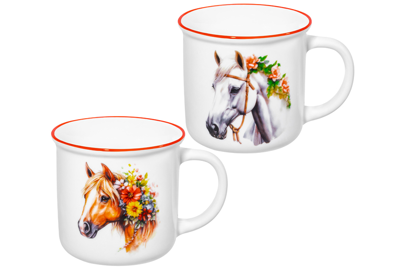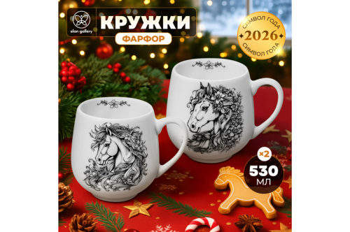 Набор 2 кружек от бренда Elan Gallery "Лошадки" выполнен из фарфора. Размер каждого изделия 12х9,5х8,5 см, объём – 400 мл. Дизайн вдохновлён грацией и красотой самого благородного животного на планете – лошади. Лошадки с благоухающими цветами на гриве приглашают помечтать о тёплой загородной атмосфере. Кружечки с красным окаймлением помогут провести множество приятных завтраков с капучино или латте, а также уютных чайных вечеров с любимым горячим напитком. Белые бокалы с красочными рисунками украшены контрастным окаймлением, что придаёт им праздничный вид. Они подходят ценителям чая и кофе, которые любят пить из красивой посуды. Фарфоровое изделие с принтом отлично подойдёт как для молока, так свежевыжатого сока и морса. Гладкие фарфоровые стеночки в отличие от керамических быстро отмываются и не впитывают цвет напитков. Кружки со стильным дизайном украсят интерьер кухни или столовой. Подойдут как женщине, так и мужчине для кофейных перерывов на работе в офисе. Можно использовать как парные. Не рекомендуется применять абразивные моющие средства. Подходят для микроволновой печи и посудомоечной машины. Набор поставляется в стильной картонной коробке. Благодаря красочной коробочке вам не понадобится дополнительная подарочная упаковка. Станет приятным подарком на праздник. Подарите фарфоровую кружку близким или коллеге, чтобы выразить свои тёплые чувства. Особенно понравится любителям лошадок, а также ценителям эстетичных и оригинальных вещей. В коллекции бренда Элан Галерея представлено много кухонного инвентаря, сувениров и товаров для дома, в том числе бокалов и красивых чашек. Сделайте перерыв на мечты и насладитесь любимыми напитками из кружек со стильным дизайном!
