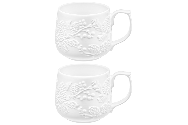 Набор 2 кружек Elan Gallery "Шишки" выполнен из фарфора. Размер каждого изделия 13х9х9 см, объём – 450 мл. "Шишки" – это коллекция фарфоровой посуды, вдохновлённая атмосферой хвойного леса. Белоснежная поверхность изделий украшена утончённым рельефом веточек и шишек. Природные мотивы наполнят вашу сервировку уютом и ощущением светлого праздника. Подарите себе мгновения тишины и свежести – с дыханием леса и тонкой красотой в каждой детали. Каждая кружечка подходит ценителям чая и кофе, которые любят пить из красивой и необычной посуды. Это отличный вариант для того, чтобы согреться горячим какао зимой и освежиться прохладным лимонадом летом. Интересный бокал украсит ваш стол своим стильным дизайном как на праздник, так и в будни. Пейте молоко или кефир и наслаждайтесь изящным рельефом! В офисе станет незаменимым предметом для чаепития или перерыва на капучино и латте. Не рекомендуется применять абразивные моющие средства. Можно использовать в микроволновой печи и мыть в посудомоечной машине. Поставляется в картонной коробке. Фарфоровая посуда станет чудесным подарком на любой праздник. Благодаря стильной коробочке вам не понадобится дополнительная подарочная упаковка! Наслаждайтесь любимыми напитками из этого комплекта сами, либо сделайте сюрприз своим близким! Коллекция "Шишки" позволит собрать чайный или кофейный сервиз в едином стиле и станет украшением вашего дома.