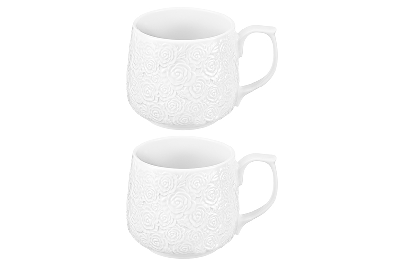 Набор 2 кружек Elan Gallery "Розы" выполнен из фарфора. Размер каждого изделия 13,5х10х9 см, объём – 500 мл, размер дна – 7 см. Фарфоровые изделия украшены рельефным узором с цветами. Каждая кружечка подходит ценителям чая и кофе, которые любят пить из красивой и необычной посуды. Это отличный вариант для того, чтобы согреться горячим какао зимой и освежиться прохладным лимонадом летом. Интересный бокал украсит ваш стол своим стильным дизайном как на праздник, так и в будни. Пейте молоко или кефир и наслаждайтесь изящным рельефом! В офисе станет незаменимым предметом для чаепития или перерыва на капучино и латте. Не рекомендуется применять абразивные моющие средства. Можно использовать в микроволновой печи и мыть в посудомоечной машине. Поставляется в картонной коробке. Фарфоровая посуда станет чудесным подарком на любой праздник. Благодаря стильной коробочке вам не понадобится дополнительная подарочная упаковка. Наслаждайтесь любимыми напитками из этого комплекта сами, либо сделайте сюрприз своим близким! Коллекция "Розы" позволит собрать чайный или кофейный сервиз в едином стиле и станет украшением вашего дома.