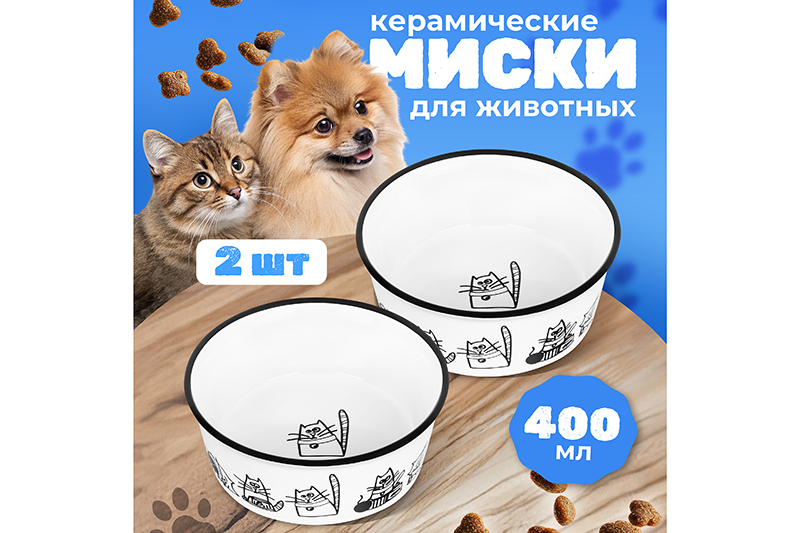Набор 2 мисок для домашних животных «Жизнь кошек» от Elan Gallery подойдёт для котов, собак мелких пород и других питомцев. Размер каждого изделия – 13,5х13,5х5 см, объём – 400 мл. Выполнены из керамики, безопасной для здоровья и не выделяющей вредных веществ. В отличие от металлической посуды, керамические изделия не впитывают запахи, что особенно важно для животных из-за хорошего обоняния. Они гипоаллергенны и легко отмываются, что делает их удобными в повседневном использовании. Мисочки украшены чёрной каймой и контурным рисунком в виде забавных котиков. Декоративный комплект подойдёт как владельцам нескольких животных, так и для раздельного хранения сухого и влажного корма. Благодаря глубокой форме ёмкости также можно использовать для воды в качестве поилки. Они имеют устойчивые основания и не скользят по полу. Расположите их на кухне или в любом другом подходящем месте в доме. Не рекомендуется применять абразивные моющие средства. Подходят для использования в микроволновой печи и посудомоечной машине в режиме «Эко». Поставляются в дизайнерской картонной коробке – благодаря ей вам не потребуется дополнительная подарочная упаковка. В коллекции бренда Элан Галерея вы найдёте эстетичные и практичные зоотовары – кошачьи и собачьи миски, а также удобные лежанки. Такие аксессуары прекрасно дополнят ваш домашний инвентарь и помогут окружить вашего любимца заботой и уютом!