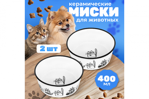 Набор 2 мисок для домашних животных «Жизнь собак» от Elan Gallery подойдёт для котов, собак мелких пород и других питомцев. Размер каждого изделия – 13,5х13,5х5 см, объём – 400 мл. Выполнены из керамики, безопасной для здоровья и не выделяющей вредных веществ. В отличие от металлической посуды, керамические изделия не впитывают запахи, что особенно важно для животных из-за хорошего обоняния. Они гипоаллергенны и легко отмываются, что делает их удобными в повседневном использовании. Мисочки украшены чёрной каймой и контурным рисунком в виде забавных собачек. Декоративный комплект подойдёт как владельцам нескольких животных, так и для раздельного хранения сухого и влажного корма. Благодаря глубокой форме ёмкости также можно использовать для воды в качестве поилки. Они имеют устойчивые основания и не скользят по полу. Расположите их на кухне или в любом другом подходящем месте в доме. Не рекомендуется применять абразивные моющие средства. Подходят для использования в микроволновой печи и посудомоечной машине в режиме «Эко». Поставляются в дизайнерской картонной коробке – благодаря ей вам не потребуется дополнительная подарочная упаковка. В коллекции бренда Элан Галерея вы найдёте эстетичные и практичные зоотовары – кошачьи и собачьи миски, а также удобные лежанки. Такие аксессуары прекрасно дополнят ваш домашний инвентарь и помогут окружить вашего любимца заботой и уютом!