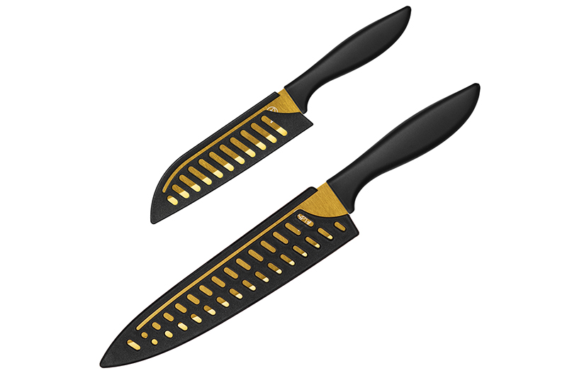 Набор 2 ножей 24*1,6*3,5 см + 33,8*2*5 см "Золото" с защитными пластиковыми чехлами