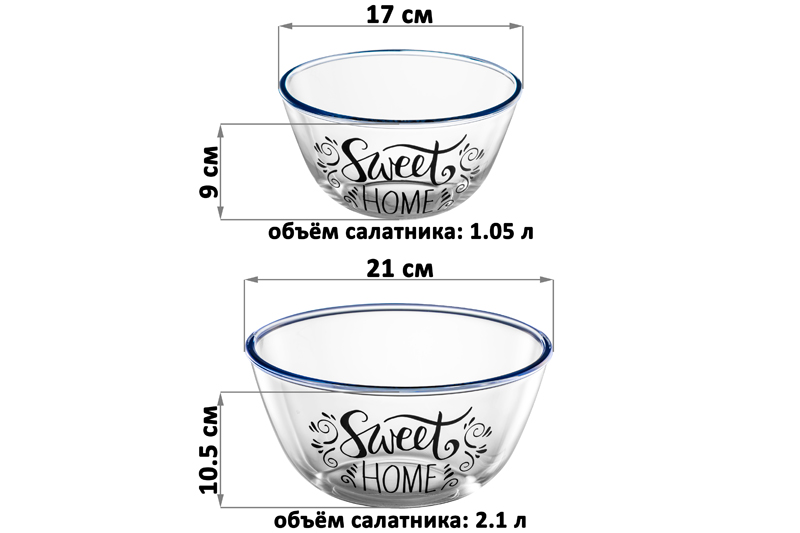 Набор 2 салатников 1050 мл 17*17*9 см + 2,1л 21*21*10,5 см "Crystal glass" "Sweet home" стекло