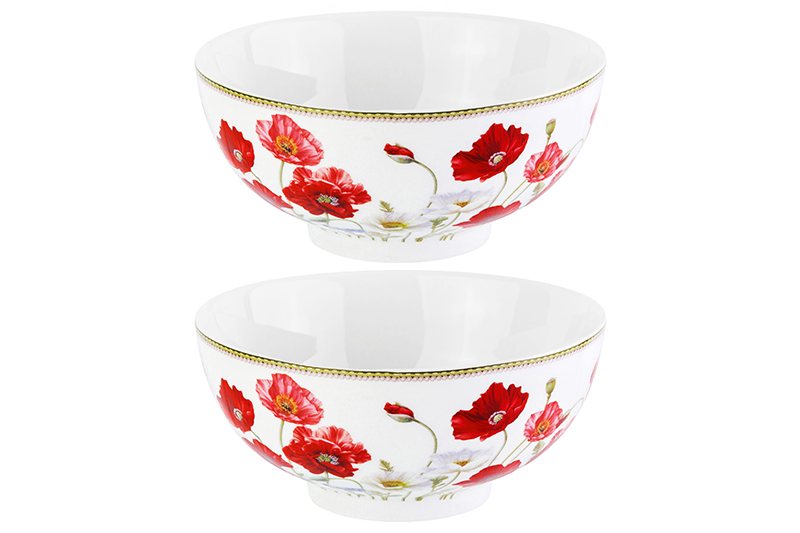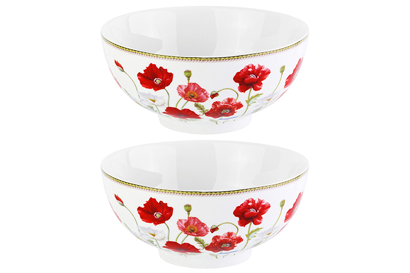 Набор 2 салатников - 15*15*7 см 700 мл "Маки" NEW BONE CHINA