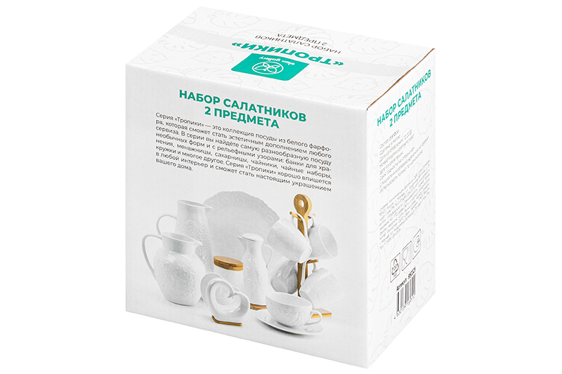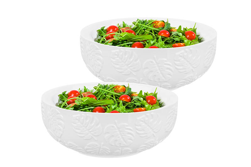 Набор круглых салатников Elan Gallery "Тропики" состоит из двух предметов и выполнен из белого фарфора в классическом дизайне. Объём каждого салатника – 800 мл, размер – 16,5х16,5х6 см. Посуда серии украшена рельефным узором в виде тропических листьев. Формы займут отличное место в вашей коллекции фарфоровой посуды. Используйте салатницы для любых закусок и угощения гостей на празднике или вечеринке. Подойдут не только для салатов, но и мясных, рыбных блюд или гарниров. Эргономичная форма с глубоким дном позволяет использовать каждую тарелочку для плова, каши или овощей. Сервировочные тарелки позволят красиво подать на стол печенье, конфеты и другие сладости. Не рекомендуется применять абразивные моющие средства. Можно использовать в микроволновой печи и мыть в посудомоечной машине. Поставляется в картонной упаковке. Этот набор из двух салатников станет отличным подарком для любой хозяйки, которая ценит стильную сервировку. Понравится любителям посуды в скандинавском стиле. Серия «Тропики» позволит собрать сервиз в едином стиле и станет украшением вашей кухни.