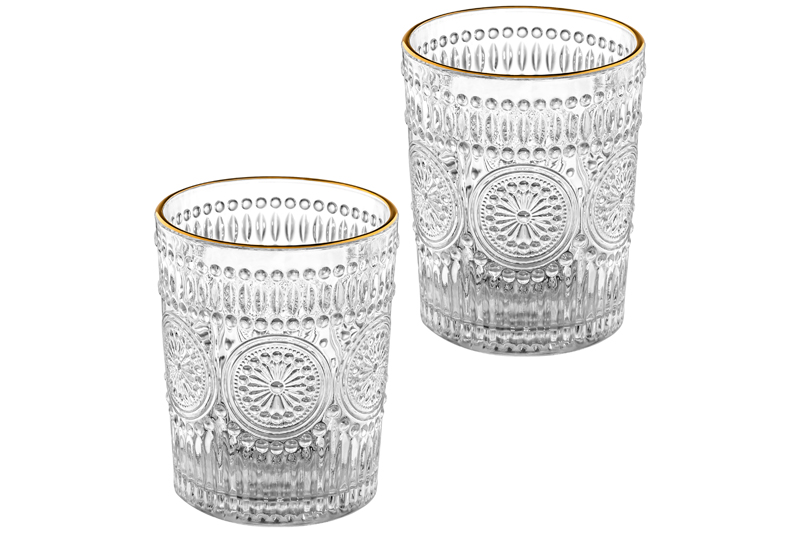 Набор 2 стаканов из стекла поможет провести множество приятных вечеров с любимыми напитками. Размер каждого стакана – 7,9х7,9х10 см, объём – 300 мл. Каждое изделие украшено изящным рельефным узором и золотой окантовкой. Барные стаканы подойдут для разнообразных холодных напитков: воды, сока, лимонада и морса, а также для алкогольных и безалкогольных коктейлей. Дополните свой домашний бар необычным и изысканным набором! Стаканы также можно использовать для кофе с молоком: латте или капучино. Не рекомендуется применять абразивные моющие средства. Не использовать в микроволновой печи и посудомоечной машине. Набор поставляется в красивой картонной упаковке. Он поможет организовать эстетичную сервировку стола и станет приятным подарком для ваших родных, близких и коллег.