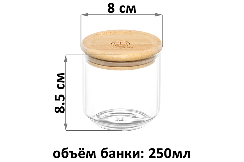 Набор 3 банок из серии Crystal glass поможет организовать хранение продуктов на вашей кухне. Размер каждого изделия – 8х8х8,5 см, объём – 250 мл. Выполнены из жаростойкого стекла, крышки выполнены из бамбука. Ёмкости станут незаменимым элементом кухонного инвентаря. Используйте штабелируемые баночки для удобного и компактного хранения сыпучих продуктов: чая, кофе, сахара, соли, приправ, специй и круп. Они также идеально подойдут для сладостей и небольших закусок – конфет, орехов, ягод и сухофруктов. Деревянные крышки с силиконовыми уплотнителями обеспечивают герметичное закрытие, сохраняя свежесть и аромат содержимого. Углублённая форма крышечек позволяет ставить банки друг на друга, что экономит место на кухне и помогает поддерживать порядок. Стильный и практичный дизайн делает эти баночки идеальным решением для организации пространства! Не рекомендуется применять абразивные моющие средства. Без бамбуковых крышек подходят для использования в посудомоечной машине и микроволновой печи. Изделие поставляется в стильной картонной коробке – благодаря ей вам не потребуется дополнительная подарочная упаковка. Оно станет отличным подарком для хозяйки, ценящей функциональный и стильный кухонный инвентарь!