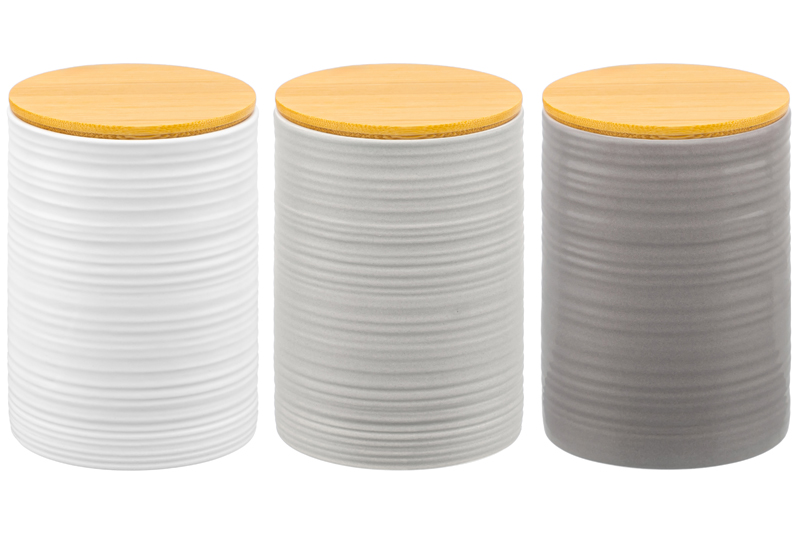 Набор 3 банок д/хранения 750 мл 10*10*14,6 см с бамбук. крышк с сил. упл. белая, св-серая, серая мат