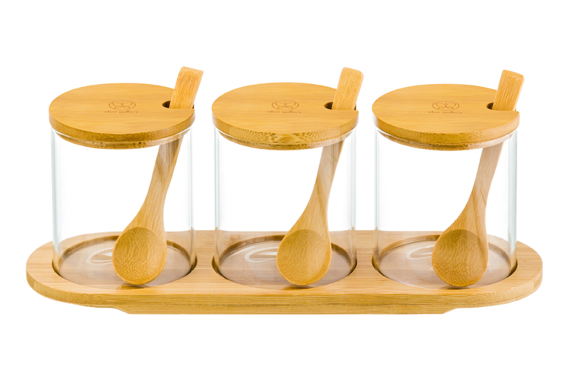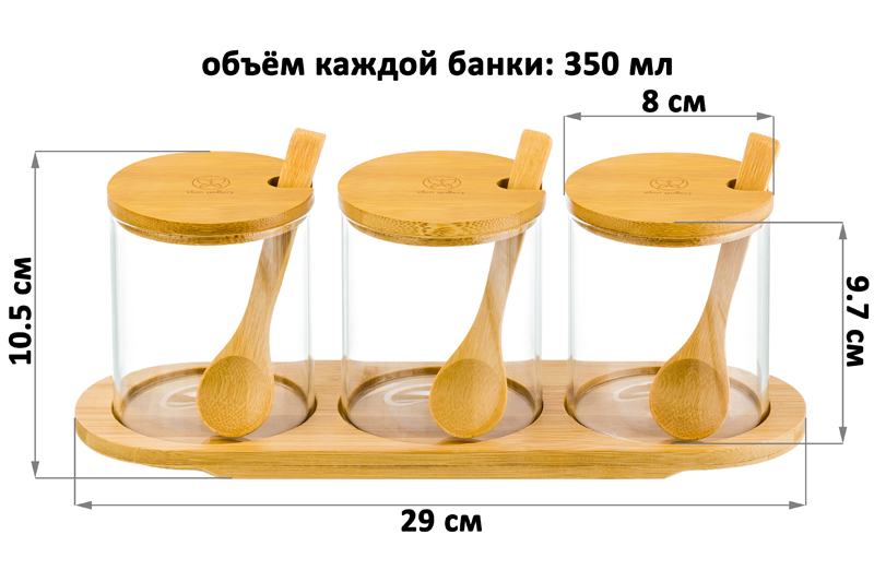 Набор 3 банок д/специй 350 мл 29*9,5*10,5 см "Crystal glass" + бамб.крышка+ложка+бамб.подставка