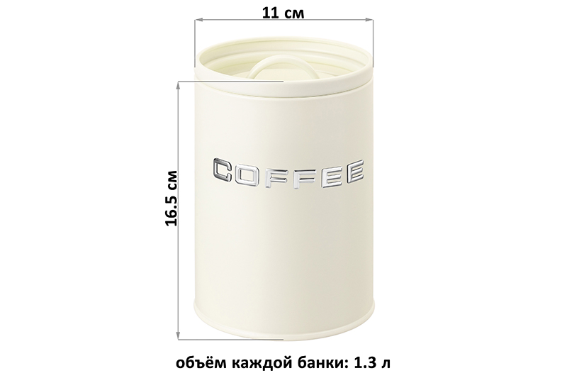 Набор 3 банок для сыпучих продуктов от бренда Elan Gallery станет удобным и эстетичным дополнением вашей кухни. Размер каждого изделия – 11х11х16,5 см, объём – 1,3 литра, высота каждой банки без крышки – 15 см. Круглые ёмкости молочного цвета выполнены из металла с пудровым покрытием. Крышки с силиконовыми уплотнителями имеют удобные для захвата ручки в форме петелек. Ёмкости позволят красиво хранить продукты на полке или в шкафу. Благодаря стильному дизайну подходят для эстетичного хранения на столе, а также для сервировки. Каждая металлическая банка украшена выпуклыми надписями серебряного цвета: "Tea"("Чай"), "Coffee"("Кофе"), "Sugar"("Сахар"). Серебристые буквы выполнены из пластика. Комплект из кофейной баночки, сахарницы и чайного контейнера станет элементом декора вашей кухни. Кухонные баночки для сыпучих продуктов украсят интерьер благодаря современному минималистичному дизайну. Не рекомендуется применять абразивные моющие средства. Нельзя использовать в микроволновой печи и посудомоечной машине. Поставляются в стильной картонной коробке. Набор посуды из 3 предметов станет украшением кухни или приятным подарком на любой праздник. Благодаря красочной коробочке не потребуется подарочная упаковка. В коллекции бренда Элан Галерея представлено много кухонных органайзеров, сахарниц, столового инвентаря и других функциональных товаров для дома. Выберите вариант на свой вкус.