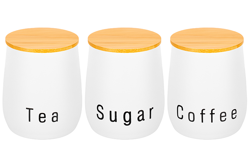 Набор 3 банок для сыпучих продуктов 850 мл 10,5*10,5*12,5 см "Tea, coffee, sugar" белый с бам.крыш