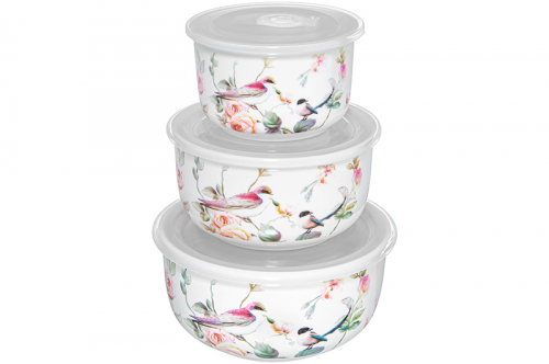 Набор 3 салат. 1 л 16*16*8+500 мл 13,5*13,5*7+300 мл 10,5*10,5*6,5 см "Певчие птички" с крышк. NEW B