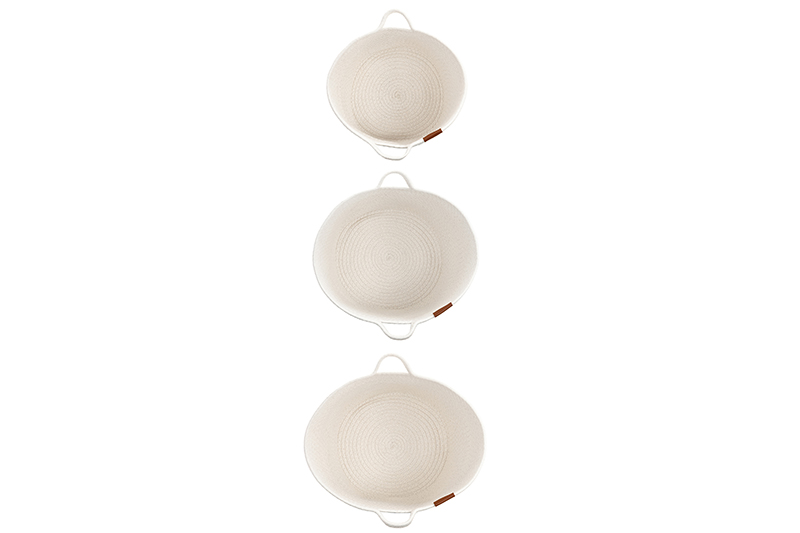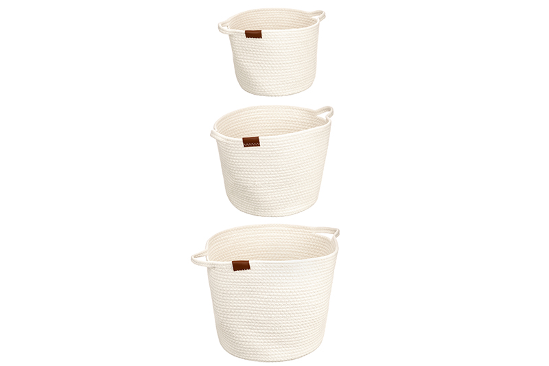 Набор 3 плетёных корзин от ELCASA предназначен для организации системы хранения вещей в вашем доме. Включает изделия разных размеров: 27х27х20 см (размер дна – 22,5х22,5 см), 30х30х25 см (размер дна – 25,5х25,5 см), 37х37х30 см (размер дна – 29х29 см). Стенки представляют собой плетение из хлопкового шнура. Благодаря элегантному дизайну и универсальному белому цвету набор станет не только практичным, но и привлекательным элементом декора и стильным дополнением вашего интерьера. Эстетичные плетёные корзиночки послужат контейнерами для хранения мелочей и аксессуаров. Они помогут создать уют в любой части вашей квартиры. В прихожей храните в них шарфы, зонты, шапки и перчатки. В спальне компактно сложите тапочки, наволочки и подушки. Расположите их в детской комнате под игрушки или книги, на кухне – под кухонные полотенца или фартуки. Приспособьте их под художественные принадлежности и приборы для рукоделия: альбомы, кисточки, нитки и пряжу. Послужат в качестве офисных, позволяя держать под рукой папки и документы. Благодаря прочным ручкам даже наполненные контейнеры будет удобно переносить. Не рекомендуется применять абразивные моющие средства. В коллекции бренда ЭЛЬКАСА представлены разнообразные товары для дома, которые привнесут в ваш быт практичности и стиля.