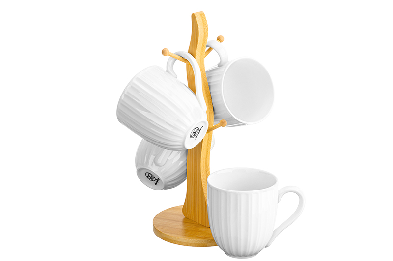 Набор 4 кружек 320 мл 12*8,5*9,5 см "Ампир" на дерев. подставке 12,5*12,5*29 см