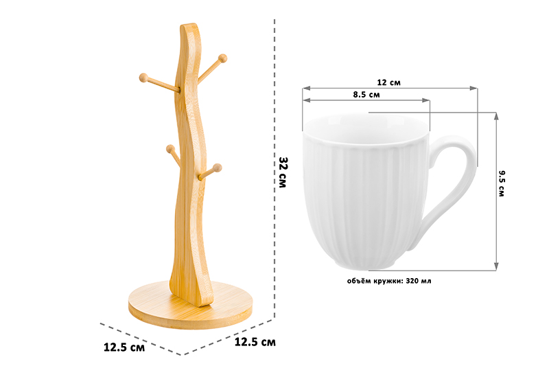 Набор состоит из 4 кружек серии «Ампир» объемом по 320 мл на подставке из бамбука. Размер каждой кружки – 12х8,5х9,5 см. Размер подставки – 12,5х12,5х29 см. Кружечки выполнены из качественного фарфора и украшены рельефными узорами. Подходят для любых напитков: чая, кофе, лимонада или сока. Кружки помогут провести множество приятных завтраков с капучино или латте, а также уютных чайных вечеров. Пейте из них кефир или молоко всей семьёй. Фарфоровая посуда не впитывает цвет напитков и долгое время будет выглядеть, как новая! Без бамбуковой подставки кружечки можно использовать в микроволновой печи и посудомоечной машине. Бамбук нельзя замачивать! Набор поставляется в стильной картонной упаковке. Посуда серии «Ампир» станет настоящим украшением кухни или приятным подарком для ваших родных и близких!
