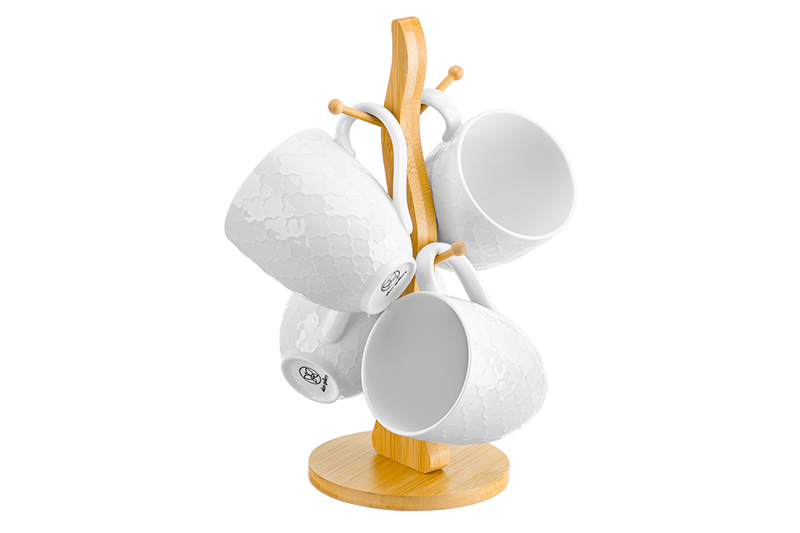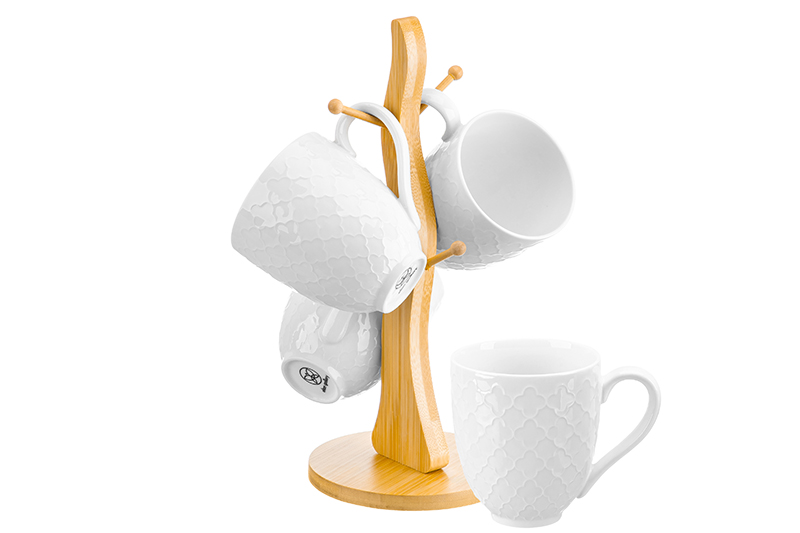 Набор 4 кружек 320 мл 12*8,5*9,5 см "Арабеск" на дерев. подставке 12,5*12,5*29 см