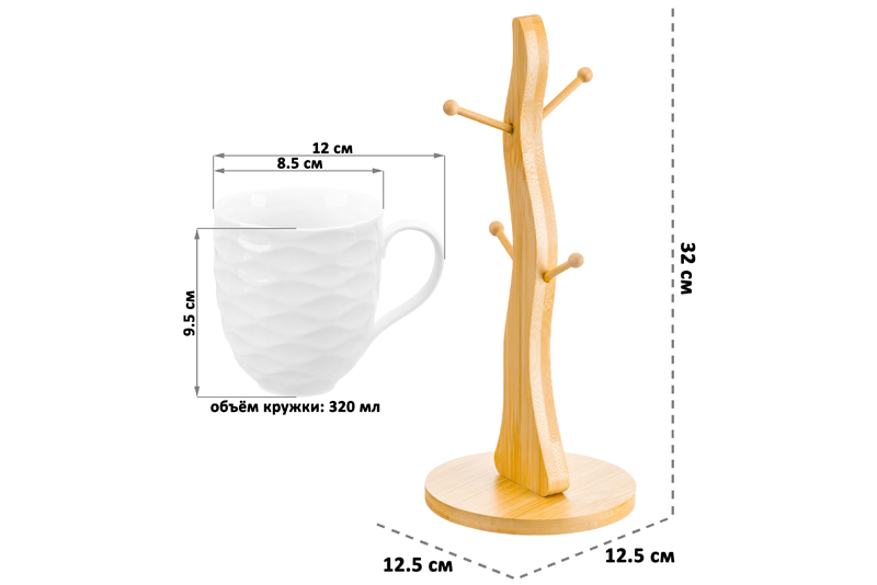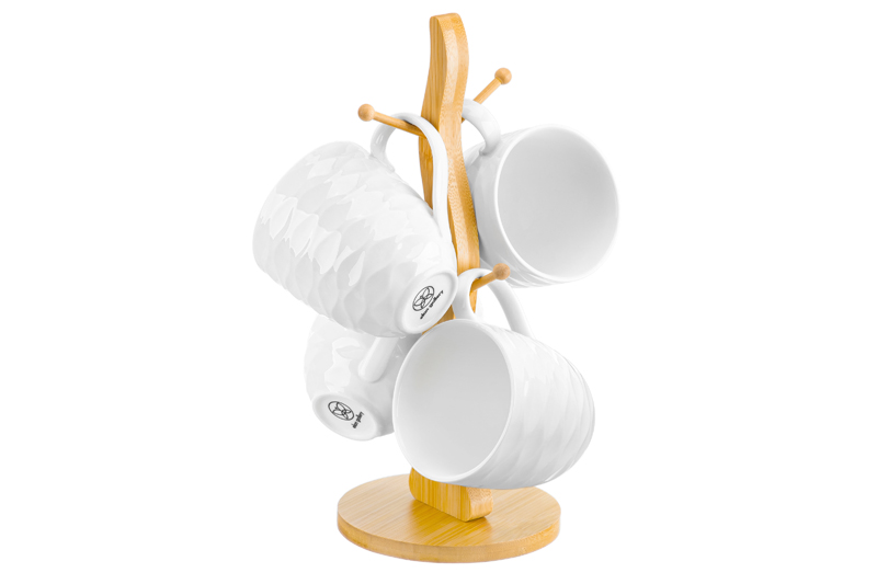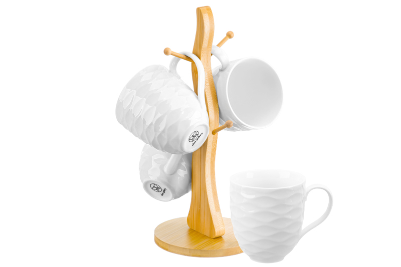 Набор состоит из 4 кружек серии «Айсберг волны» объемом по 320 мл на подставке из бамбука. Размер каждой кружки – 12х8,5х9,5 см. Размер подставки – 12,5х12,5х29 см. Кружечки выполнены из качественного фарфора и украшены рельефными узорами. Подходят для любых напитков: чая, кофе, лимонада или сока. Кружки помогут провести множество приятных завтраков с капучино или латте, а также уютных чайных вечеров. Пейте из них кефир или молоко всей семьёй. Фарфоровая посуда не впитывает цвет напитков и долгое время будет выглядеть, как новая! Без бамбуковой подставки кружечки можно использовать в микроволновой печи и посудомоечной машине. Бамбук нельзя замачивать! Набор поставляется в стильной картонной упаковке. Посуда серии «Айсберг волны» станет настоящим украшением кухни или приятным подарком для ваших родных и близких!