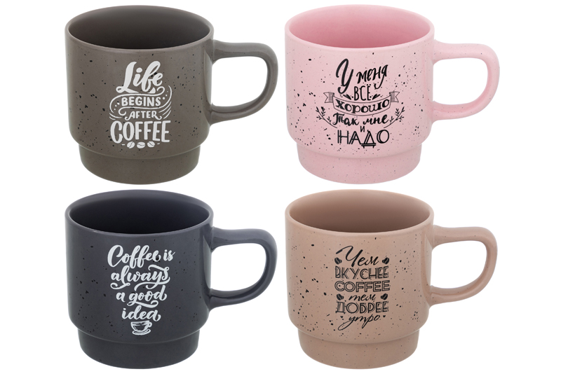 Набор 4 кружек «Кофе» предназначен для эстетичной сервировки стола. Размер каждой ёмкости – 13,5х9х9 см, объём – 380 мл. Размер набора на подставке – 27,5х10х18 см. Выполнены из высококачественного фарфора. Он не впитывает цвет напитков и легко отмывается, благодаря чему надолго сохранит свою белизну. Цветную поверхность изделий украшают чёрные вкрапления и каллиграфические надписи на русском и английском. Подставка выполнена из металла. Кофейные кружки помогут провести множество приятных завтраков с капучино и латте, а также уютные чайные вечера с конфетами, вафлями, другими десертами и сладостями. Подойдёт ценителям чая и кофе, которые любят пить из красивой и необычной посуды. Согрейтесь зимой любимым горячим напитком: какао с маршмэллоу, ягодным чаем, горячим шоколадом. Летом освежитесь домашним лимонадом или морсом. Декоративные изделия помогут провести уютное чаепитие в большой компании. Металлическая подставка поможет вам компактно хранить набор. Не рекомендуется применять абразивные моющие средства. Без подставки кружки подходят для использования в микроволновой печи и посудомоечной машине. Поставляются в дизайнерской картонной коробке – благодаря ей вам не потребуется дополнительная подарочная упаковка. Фарфоровая сервировочная посуда послужит оригинальным подарком для хозяйки, ценящей не только практичность, но и привлекательность. В коллекции бренда Элан Галерея вы найдёте множество красивой посуды, сувениров и товаров для дома, которые помогут создать комфорт и уют в любом пространстве!