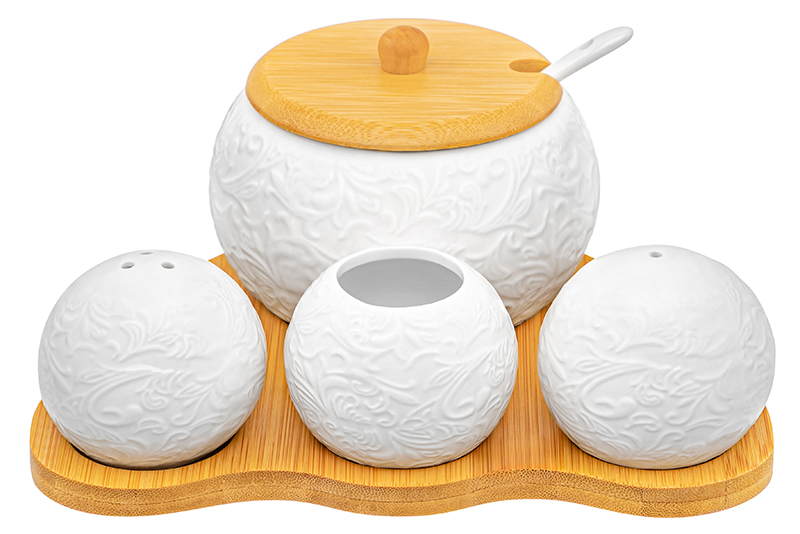 Набор 4 пр.-20*17*9 см "Лоза"- Сахарница+Вазочка под зубоч. и набор д/спец. 2 пр.на бам.подстав
