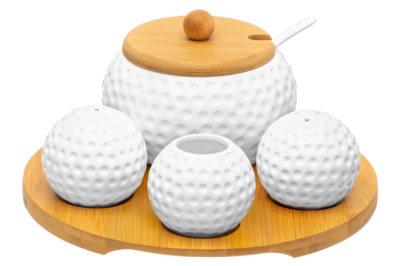 Набор 4 пр. 20,5*20,5*10 см "Сфера"-Сахарница+Вазочка под зубоч. и набор д/спец. 2 пр. на бам.под