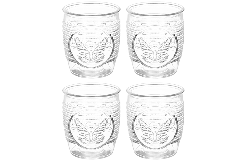 Набор стаканов Elan Gallery "Glaskraft" выполнен из стекла, состоит из четырёх предметов. Размер каждого стаканчика 8,5х8,5х10 см, объём – 380 мл. Используйте бокалы для любых прохладительных напитков: сока, лимонада (газировки) или минеральной воды. Каждый стакан украшен рельефным изображением бабочки. "Glaskraft" – это коллекция посуды для создания порядка и уюта на вашей кухне. Серия вдохновлена шведскими традициями и выполнена из прозрачного стекла с использованием элементов из металла или бамбука. Подойдут для молока, кефира или питьевого йогурта. Этот набор из 4 стаканчиков станет неотъемлемой частью сервировки вашего стола, создавая праздничное настроение даже в будни. Налейте в стаканы вино, шампанское, коктейли и наслаждайтесь любимыми напитками в кругу близких и друзей. Они станут незаменимой вещью для девичников и вечеринок. Не рекомендуется применять абразивные моющие средства. Можно мыть в ПММ (посудомоечной машине). Поставляются в стильной картонной коробке (упаковке). Набор красивых стеклянных стаканов – идеальный подарок любой женщине. "Glaskraft" – это функциональность и минимализм. Добавьте шведского уюта и очарования в каждый уголок вашего дома!