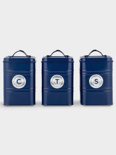 Банка для сыпучих продуктов, 3 шт, 1,45 л, сталь, синяя, Grantham. Материал: жесть(сталь). Протирать сухой/влажной салфеткой. Мыть тёплой водой с применением ЖМС и тщательно вытирать насухо. Не использовать в СВЧ и в ПММ. 1006