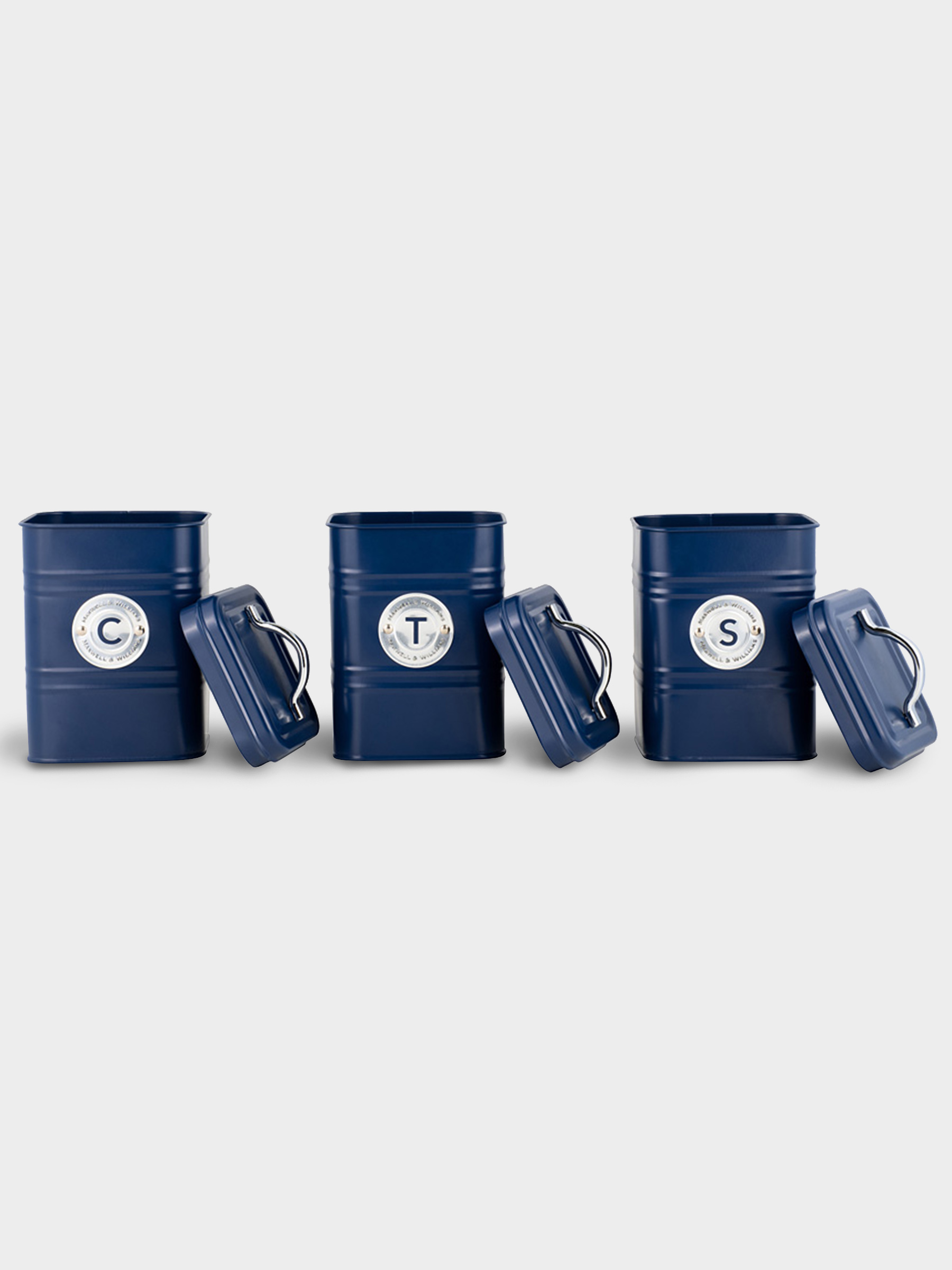 Набор банок для сыпучих продуктов, 3 пр, 1.45 л, h18 см, синие, Grantham