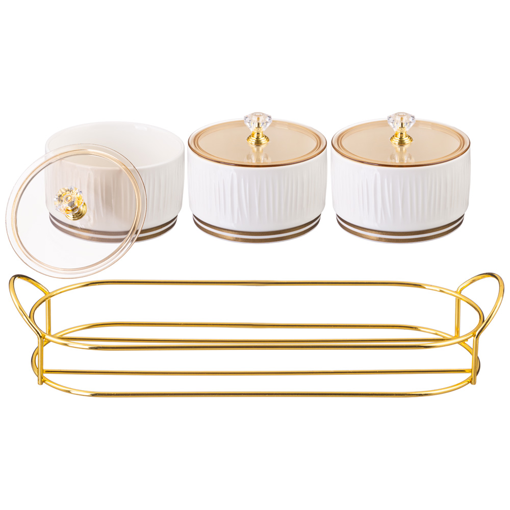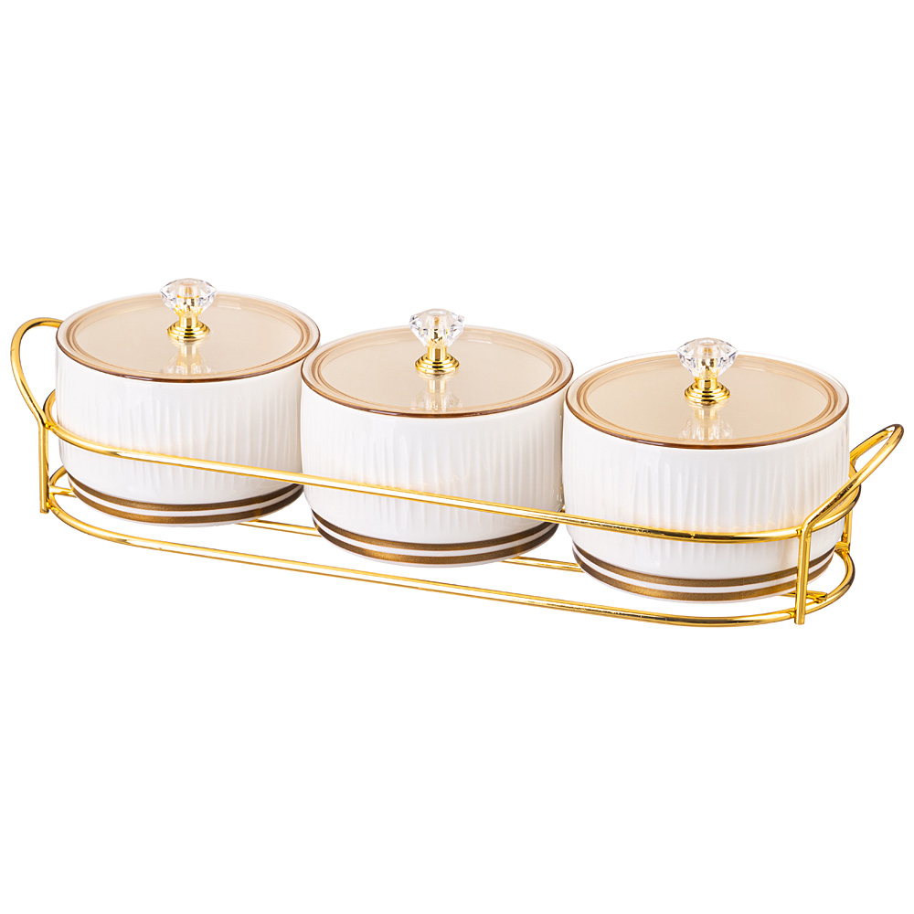 НАБОР БАНОК LEFARD "HERBAL" С ПЛАСТИК. КРЫШКОЙ 3 ШТ. 230 МЛ НА МЕТАЛЛ. ПОДСТАВКЕ (КОР=24НАБ.)