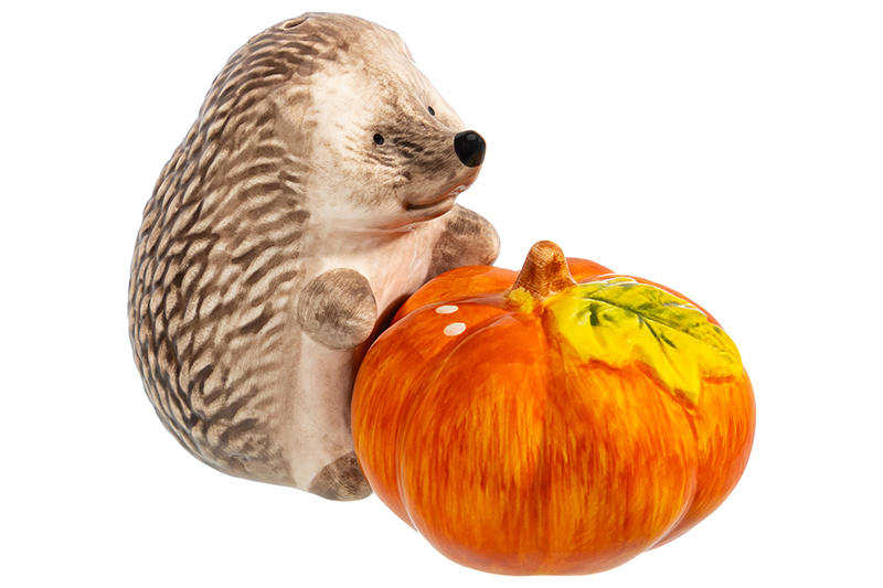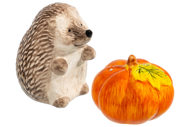 Набор для специй из серии «Ёжики» от Elan Gallery предназначен для эстетичной сервировки вашего стола. Размер перечницы – 6,5х6,5х4,5 см, объём – 60 мл. Размер – 6х6х7,5 см, объём – 80 мл. Выполнен из керамики. Включает в себя перечницу в виде реалистичной тыквы и солонку в виде милого ёжика. Тыква как символ изобилия вплетена в сюжет коллекции. Она ассоциируется с уютными осенними вечерами и волшебной атмосферой Хэллоуина. Ёмкости необычной формы позволят держать под рукой все необходимые во время приготовления еды специи и приправы. Наполняются через отверстие снизу и закрываются пластиковой пробкой. Не рекомендуется применять абразивные моющие средства. Не подходят для использования в посудомоечной машине и микроволновой печи. Поставляются в дизайнерской картонной коробке – благодаря ей вам не потребуется дополнительная подарочная упаковка. Коллекция «Ёжики» от бренда Элан Галерея – это посуда, где каждая деталь создана с теплом и раскрашена оттенками осени!