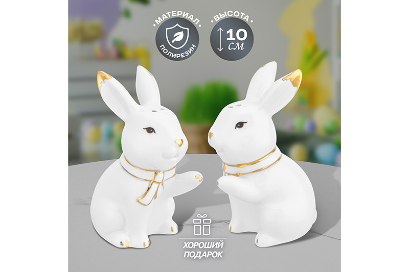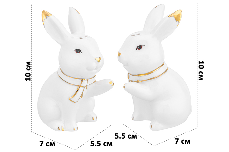 Набор д/специй 2 пр. 7*5,5*10 см "Кролики" белый с золотом
