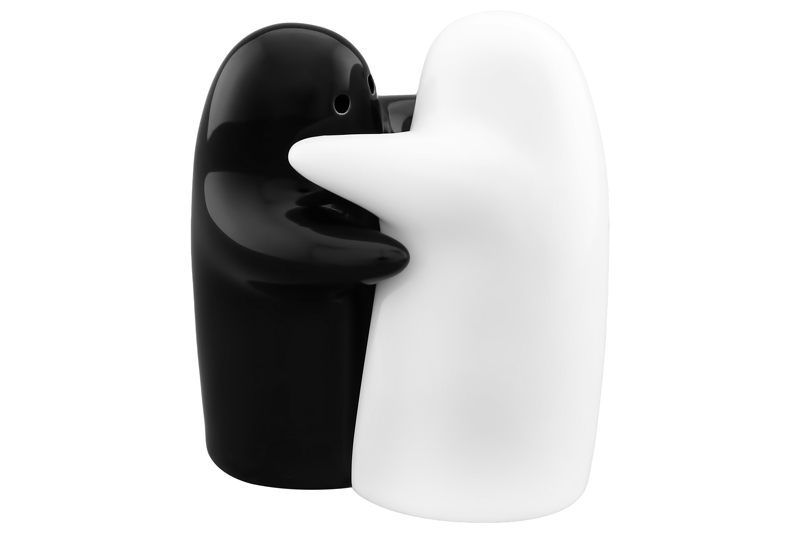 Набор для специй из двух предметов — солонки и перечницы в виде обнимающихся человечков контрастных цветов прекрасный пример высококачественной, удобной и лаконичной посуды для изящной сервировки стола. Оба предмета выполнены из прочного белого и черного фарфора. Наполнить перечницу и солонку можно через отверстие в донышке, которое надежно закрывается пластиковой пробкой. В данной серии фарфоровой посуды представлен широкий ассортимент товаров для сервировки стола, которые, несомненно, впишутся в любой интерьер благодаря лаконичному дизайну, натуральным материалам и высокой функциональности. Такому подарку будет рада любая хозяйка!