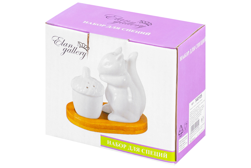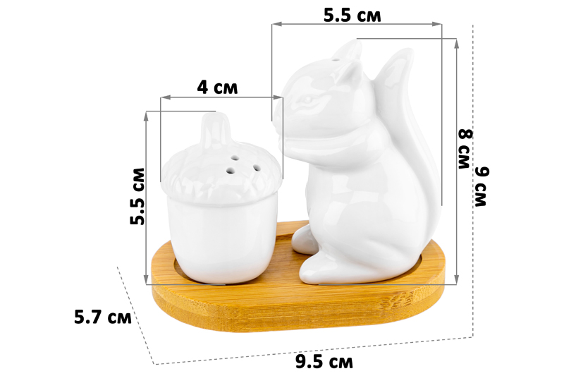 Набор д/специй 2 пр. 9,5*5,7*9 см "Белочка с желудем" на дерев. подставке