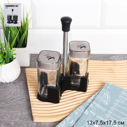 Набор для специй 2 предмета на металл подставке / T021-1 /уп 42/ стекло/пластик